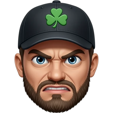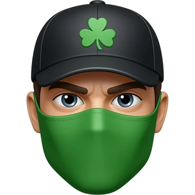 scary face of a hooligan wearing a cap with ☘️ on it and a green bandana but he looks like a hooligan and it doesnt show his smile emoji | AI Emoji Generator