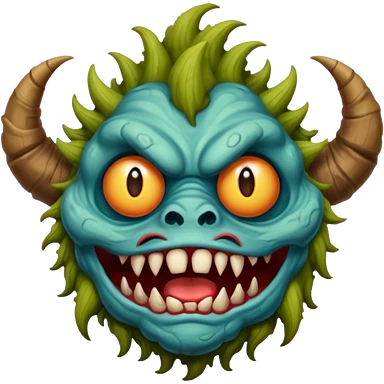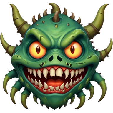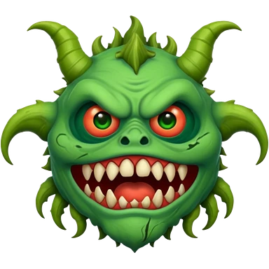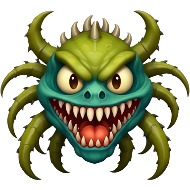 a scary flying bubbly pumpkin with poisonous shards with claws and a dangerous face, emiting fire from its ears and hands emoji