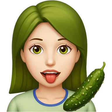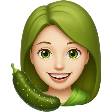 Brunette with pickle emoji