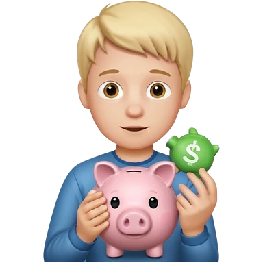 A smiling piggy bank wearing glasses and holding a computer mouse emoji