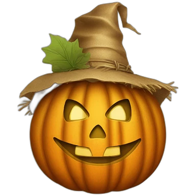 Scarecrow, Smiling face, colorful scarf, flower hat, holding a small basket. emoji