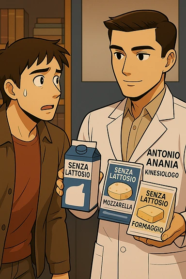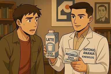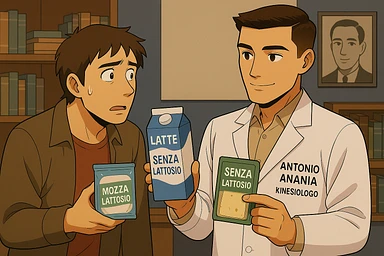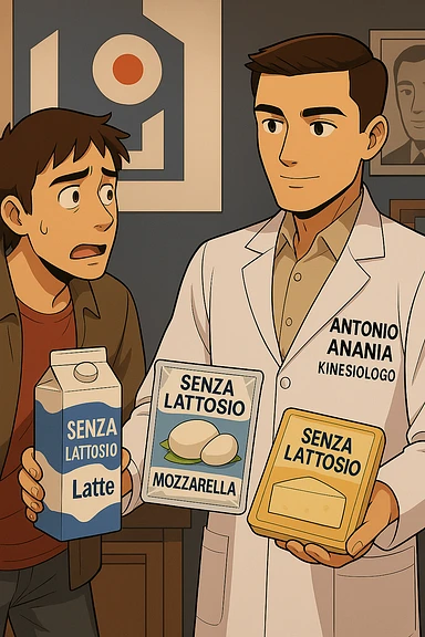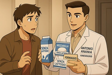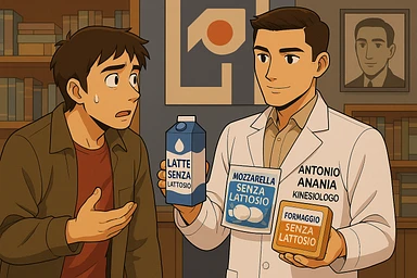 Scena in un supermercato moderno: uomo o donna tiene in mano una confezione di salmone etichettata 'BIO', con un grande bollino verde. Ma in trasparenza, dietro l’etichetta, si intravede un allevamento intensivo di salmoni in gabbie marine, acqua torbida e pesci ammassati. Espressione del cliente confusa e sospettosa. Sopra la testa, testo simbolico fluttuante: 'Etichetta ingannevole'. Colori contrastanti: confezione brillante ma realtà di fondo grigia e artificiale. Stile realistico con elementi simbolici fortiimage