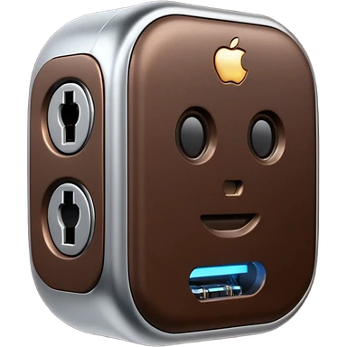 3D render of Data Port, futuristic cyborg aesthetic, fusion of organic skin and chrome metal, metallic socket embedded in dark brown skin, exposed wiring, Apple emoji style, isolated on white background --v 6.0. emoji