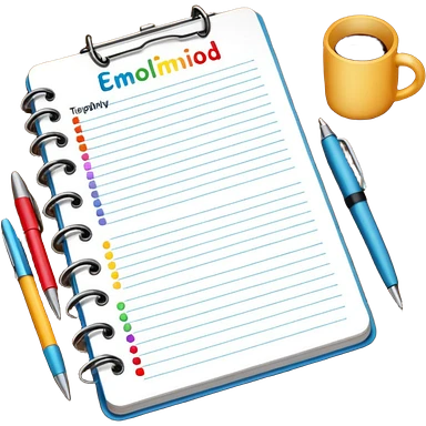 A detailed black Moleskine notebook open flat showing an agenda page with bullet points and a meeting schedule emoji