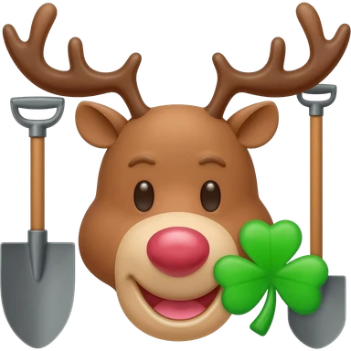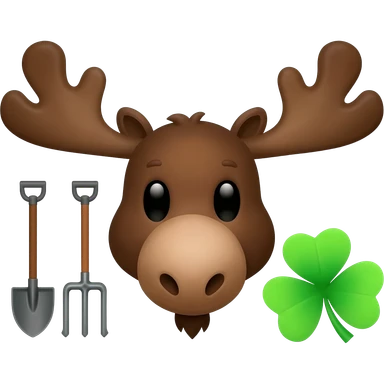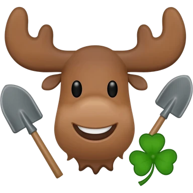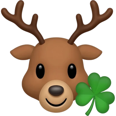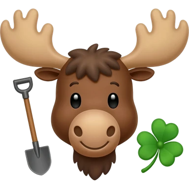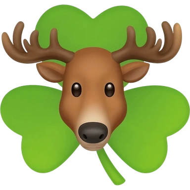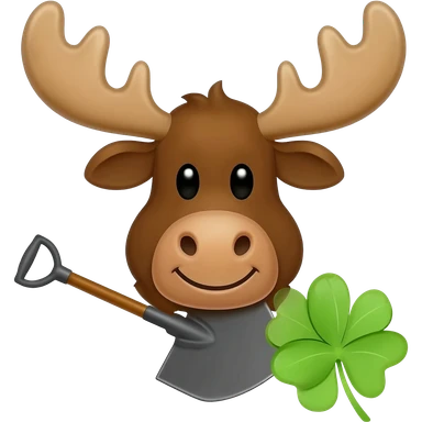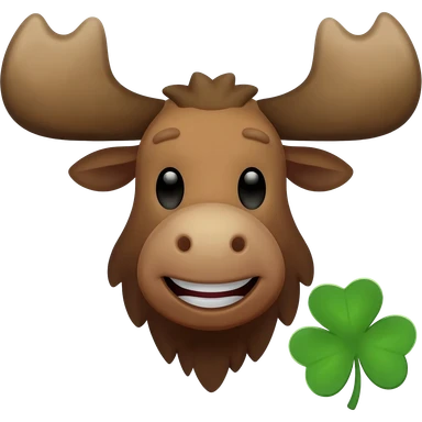 Elchkopf glücklich mit einem großen vierblatt Kleeblatt neben dran emoji
