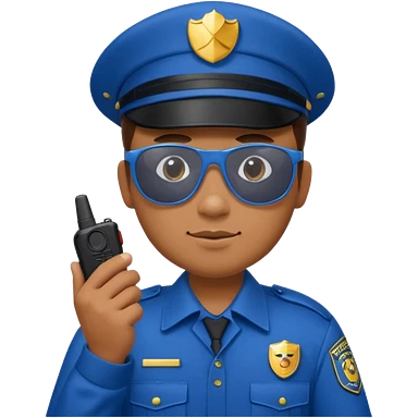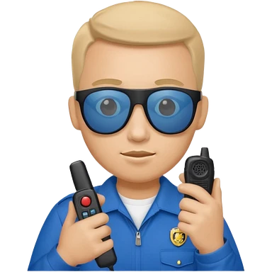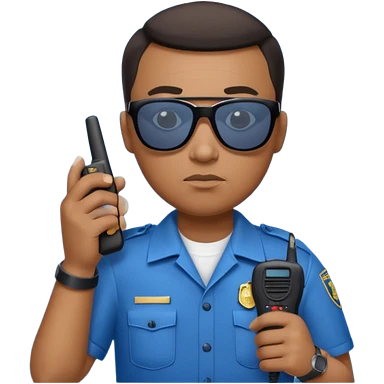 school security, blue cloth, sun glasses, holding walkie-talkie emoji