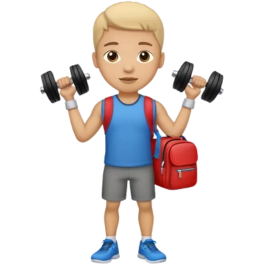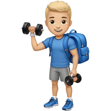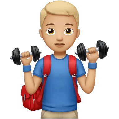 light skin student with school bag on back and dumbell in hand emoji
