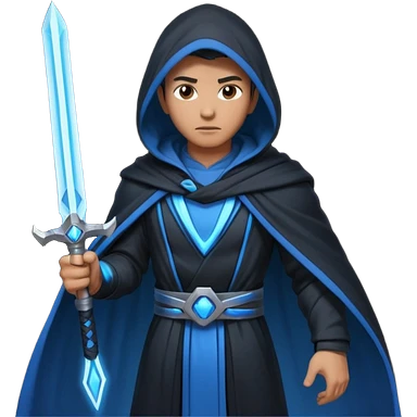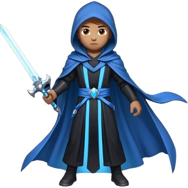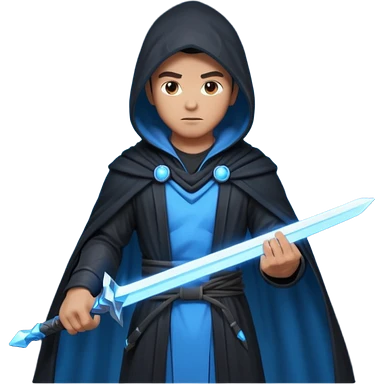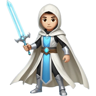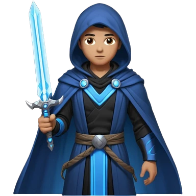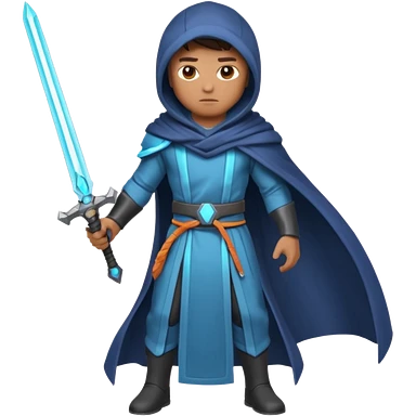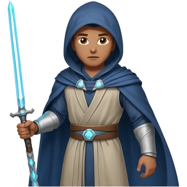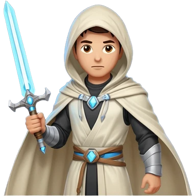 sci-fi space warrior human, glowing energy sword, hooded robe, heroic stance, 3D cartoon, mobile game character icon, clean background, no text emoji