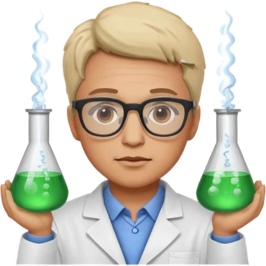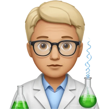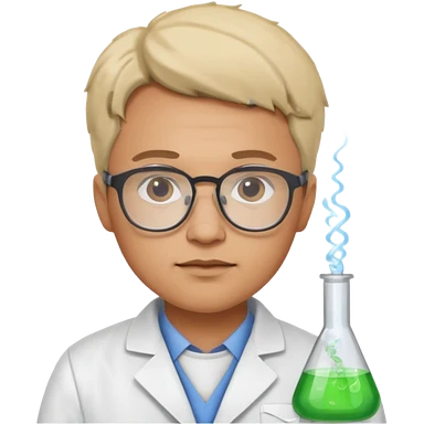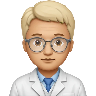 Two scientists standing together: one is a Caucasian bald man in lab coat , the other is a Caucasian woman in lab coat with short brown hair and green glasses emoji