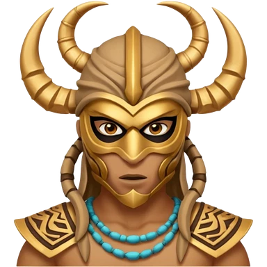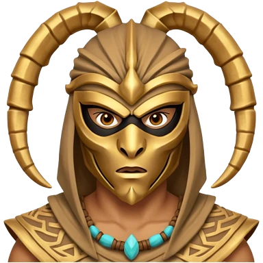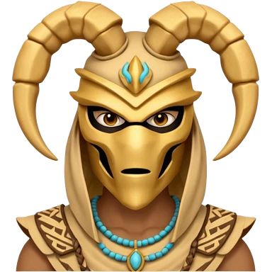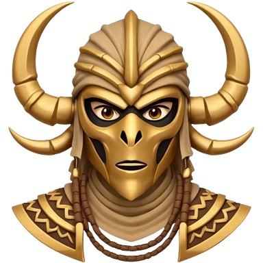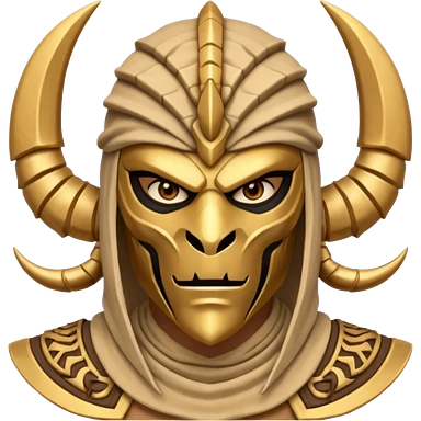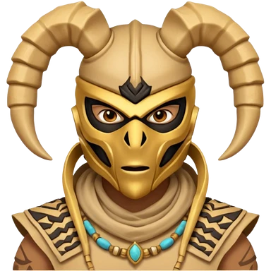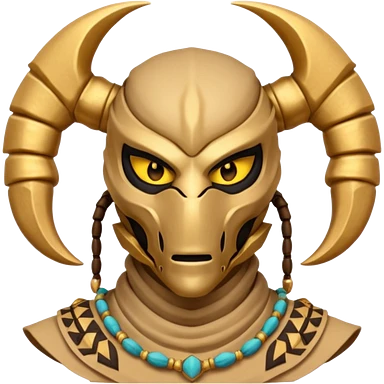 desert scorpion guard portrait, head and shoulders only, tribal mask, gold desert jewelry, fierce expression, sandy hood, 3D cartoon, mobile game icon style, clean background, no text, no watermark emoji
