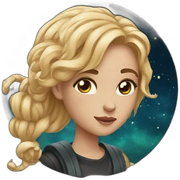 A blonde girl with long straight hair green eyes and glasses with astrological signs Aries Leo and Scorpio around her emoji