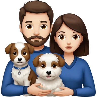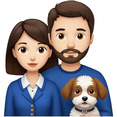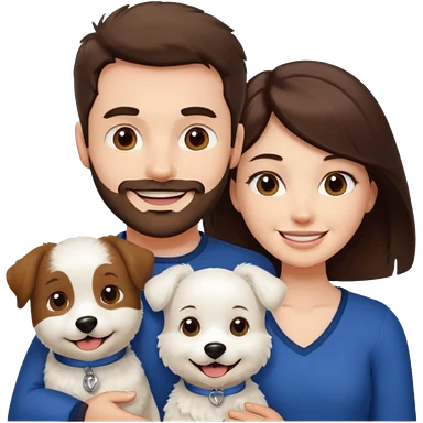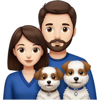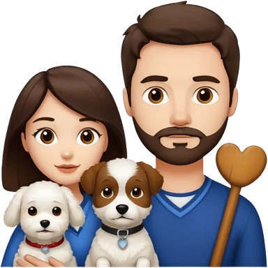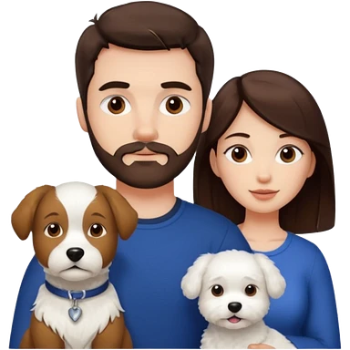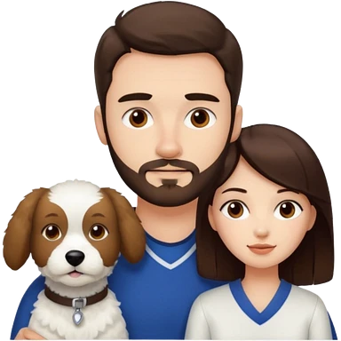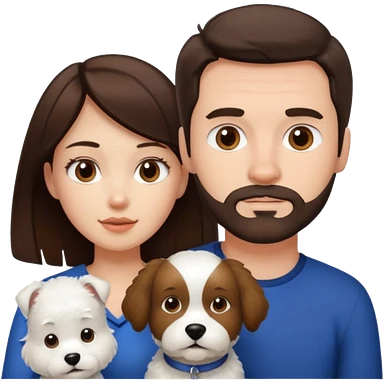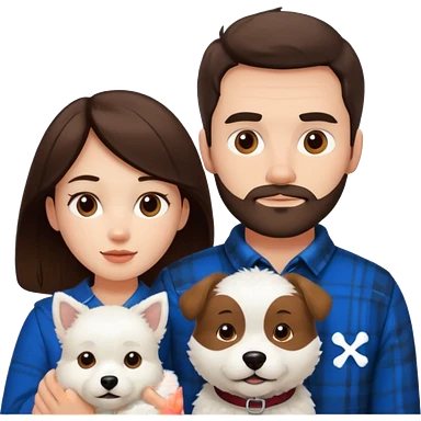 scottish man with stubble, brunette woman and white fluffy dog emoji