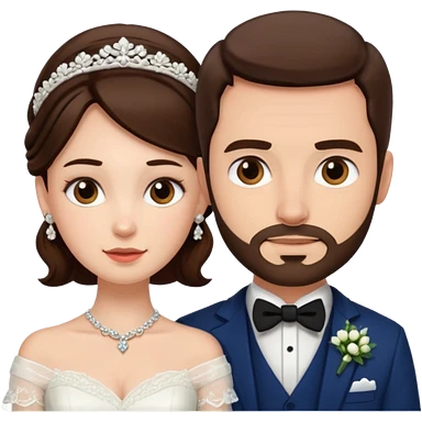 scottish man with stubble, brunette woman and one white fluffy dog emoji