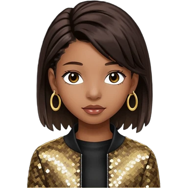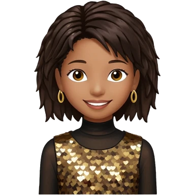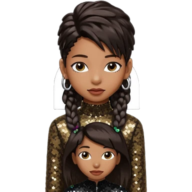 Willow Smith with long dark brown hair, dark brown sequin outfit emoji