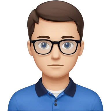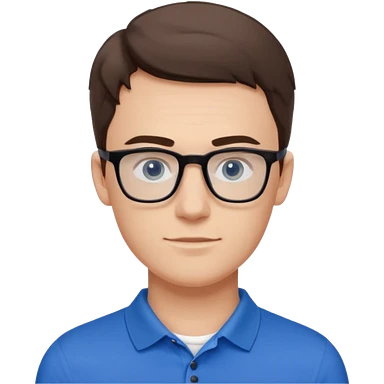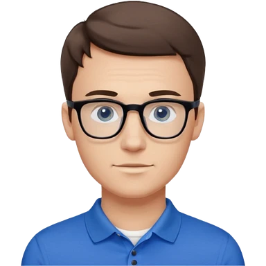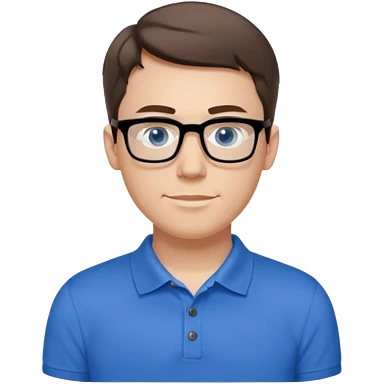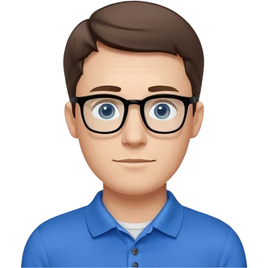 Scott The Woz Young white man, late 20s, short brown hair, blue eyes, clean-shaven, thin black rectangular glasses, slim build, wearing a blue polo shirt, friendly and energetic look. emoji | AI Emoji Generator