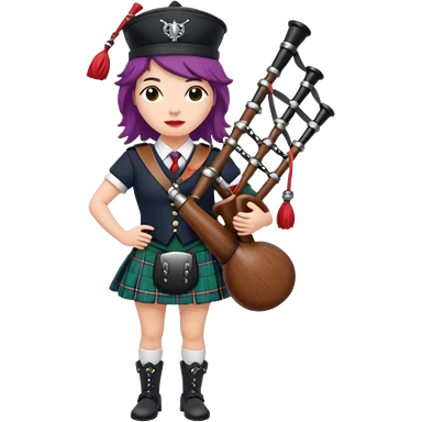 A Scottish styled vagina with legs and a face carrying bagpipes emoji