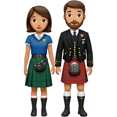 scottish man in kilt with brunette wife emoji | AI Emoji Generator