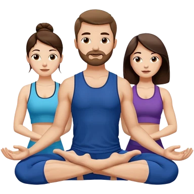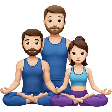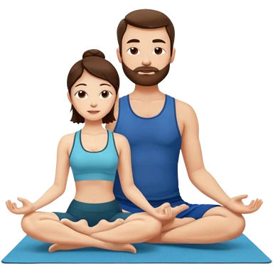scottish man with stubble, brunette woman doing yoga emoji