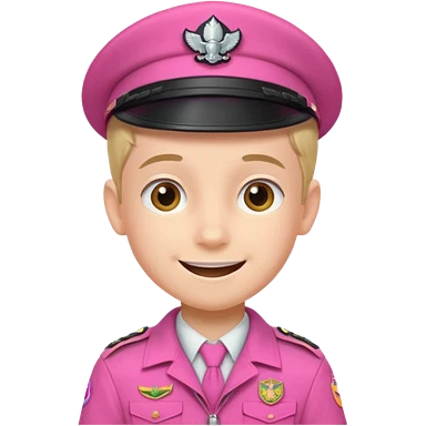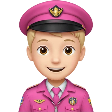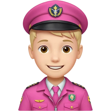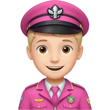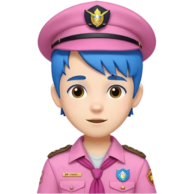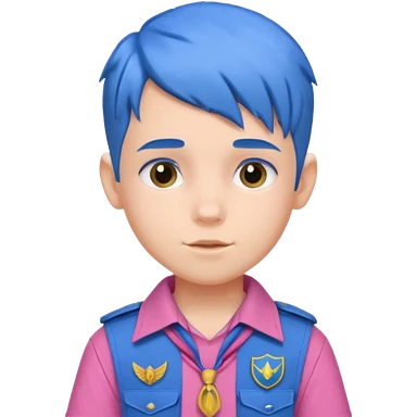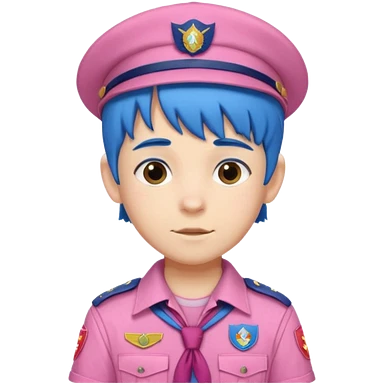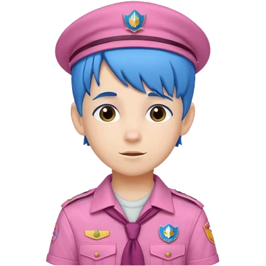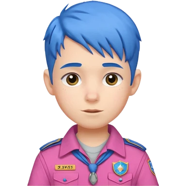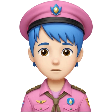 scout boy with very pink scout uniform, blue haired and hat emoji