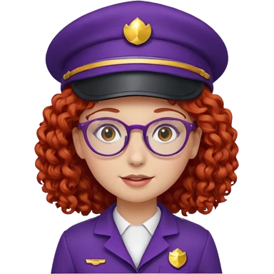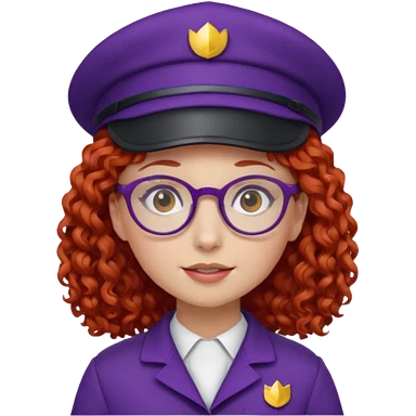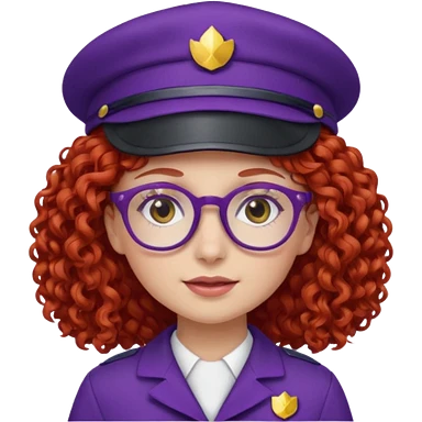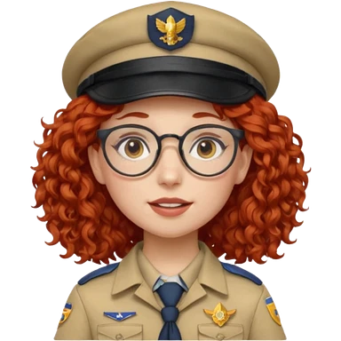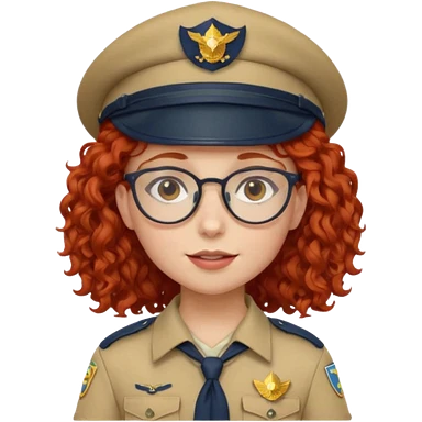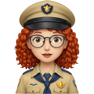 scout girl with red curly hair and uniform and hat and glassess and purle uniform emoji
