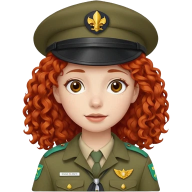 scout girl with red curly hair and uniform and hat emoji