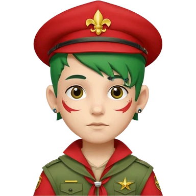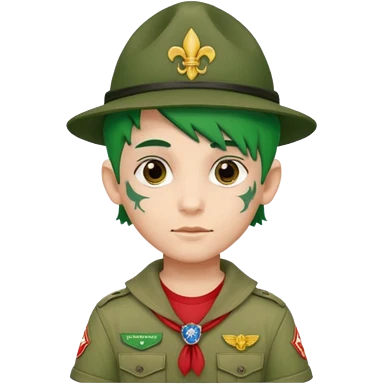 scout boy face tatooes green haired, wearing red uniform with hat emoji