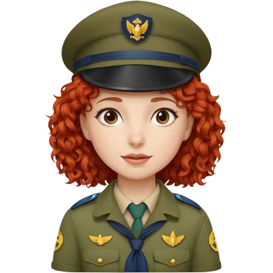 scout girl with red curly hair and uniform and hat and glassess emoji