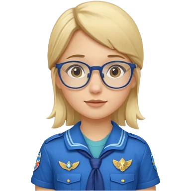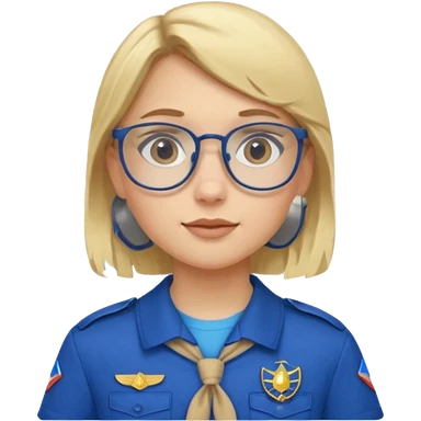 scout girl with blue scout uniform, blonde haired and glassess emoji