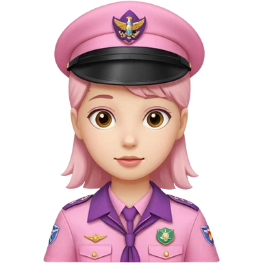 very pretty girl big green eyes, scout girl with pretty pink uniform, pink dreadlocks, and big earrings and scouts hat emoji