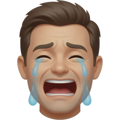 Create a cartoon-style static emoji featuring Bolt (the Disney dog) sitting with tears streaming down his face, looking sad and emotional. Keep the pose expressive and the tears sparkling for added charm. emoji