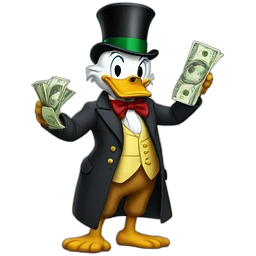 Scrooge McDuck counting money, rich duck character with top hat emoji