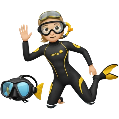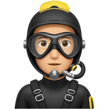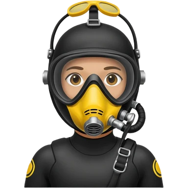 scubadiver woman, with brown, large and staright hair and black suit and Pink dive mask in her blue eyes emoji | AI Emoji Generator