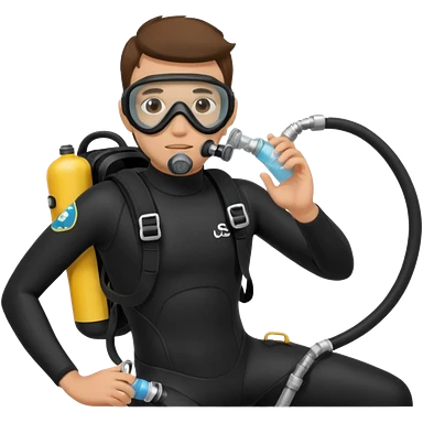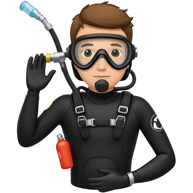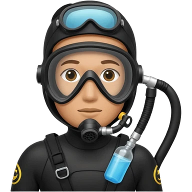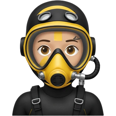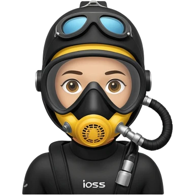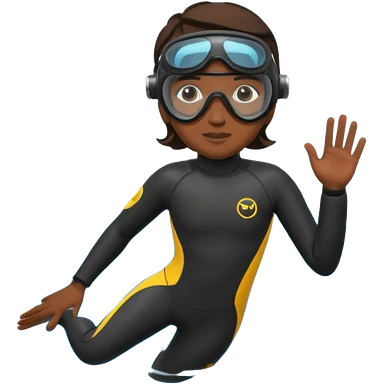 a woman with an a black scubadiver suit. she has blue eyes inside the dive mask. brown long and straight hair emoji