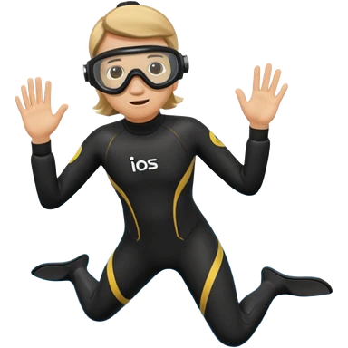 a woman with an a black scubadiver suit. she has blue eyes and an scubadiver mask brown long and straight hair emoji