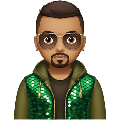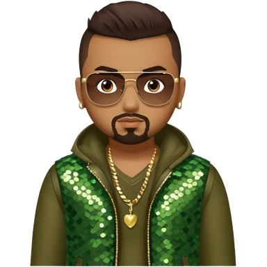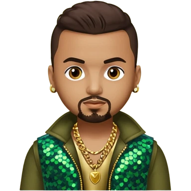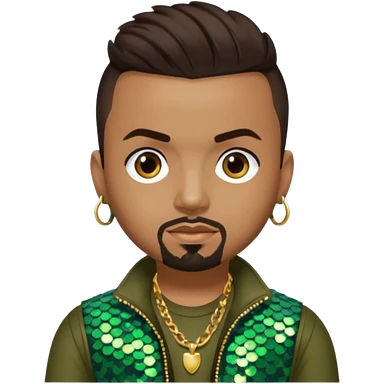 Sean Paul with dark brown hair, olive sequin outfit emoji