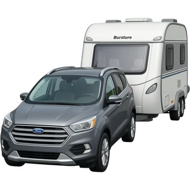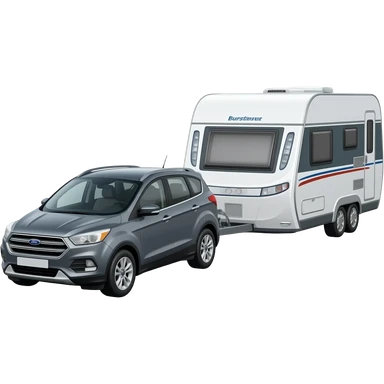 a grey Ford Kuga MK II towing a Burstner caravan emoji