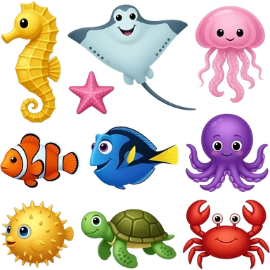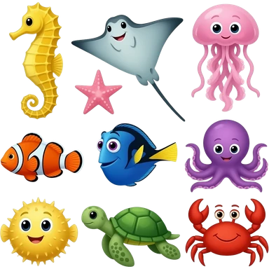Seahorse, stingray, jellyfish, starfish, Nemo and dory, octopus, pufferfish, sea turtle, and crab emoji | AI Emoji Generator