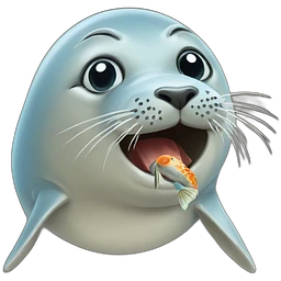 Realistic Seal Stauck with his head in a fishing yarn in the ocean, with plastic floating around emoji
