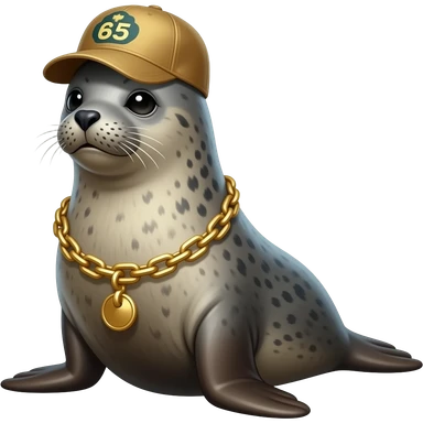 Seal with a gold chain and backwards hat emoji