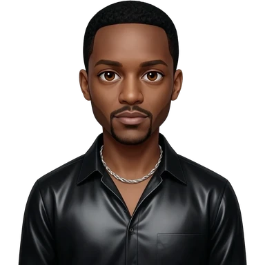 Sean Paul with brown eyes, black cornrows, black metallic shirt, silver necklace emoji