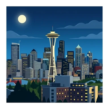 Seattle night and the moon turning blue emoji | AI Emoji Generator