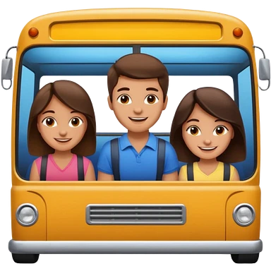 Two girls and one boy all brunette on a bus, show the whole bus emoji
