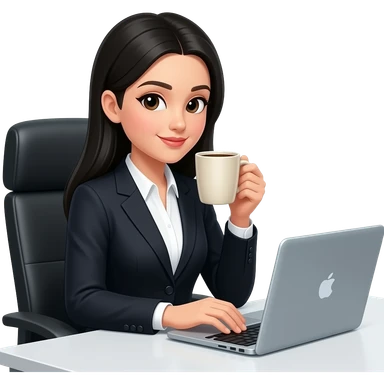 Secretary black long hair computer and drinking coffee emoji