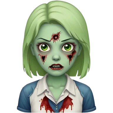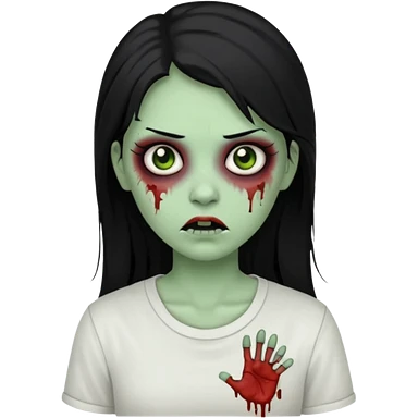 zombie girl with white shirt but similar to this with green skin black hair long emoji