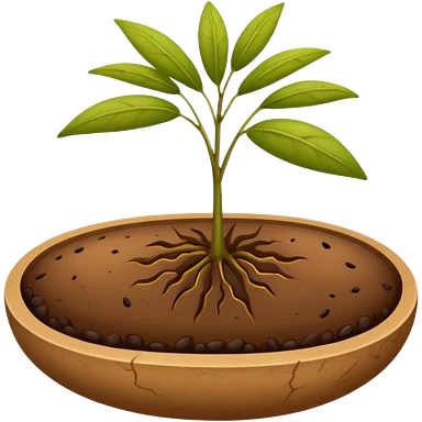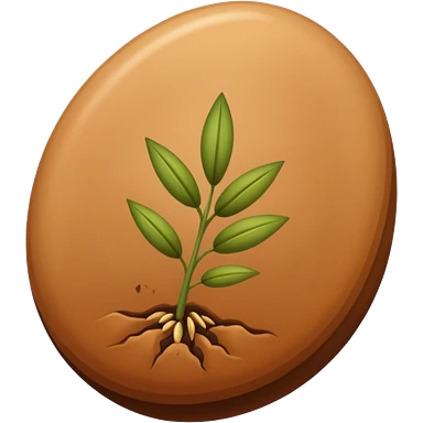 A tiny, seed with a single, bright green sprout emerging from its cracked shell. The background could be a simple brown soil texture. emoji