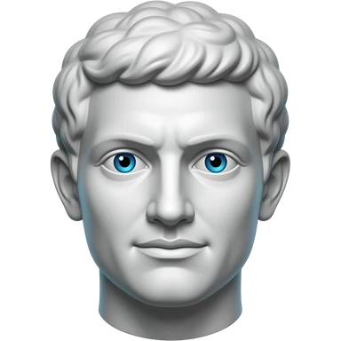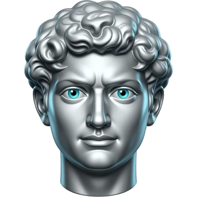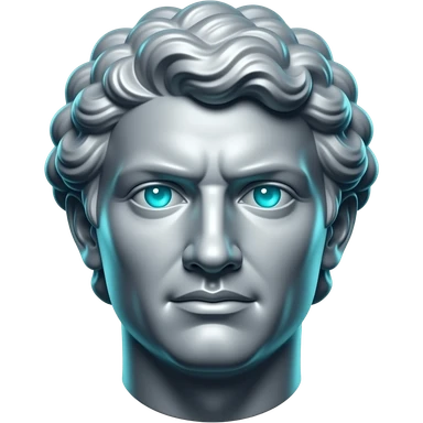 "A glasy/chrome stoic Greek statue head, front-facing, serious focused expression, subtile smile, glowing cyan (#00D4B1) eyes, dark background. Chrome reflections, subtle cyan light accents. Clean, no background, emoji style, high detail. The statue represents discipline, focus, self-mastery." emoji