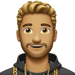 Buff guy selfie with thick chain link necklace and reddish blonde hair and beard with shaved sides of head and blond highlights on top in black tank top emoji