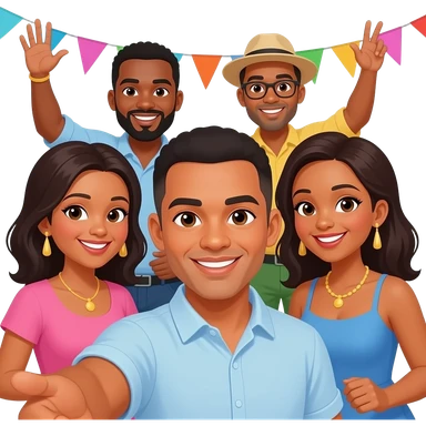 A group selfie of caribbean adults at a party emoji