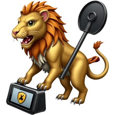 un animal con vestimenta de terno negro y sus lentes de estudio, un animal tierno y que sea el rey de la selva emoji