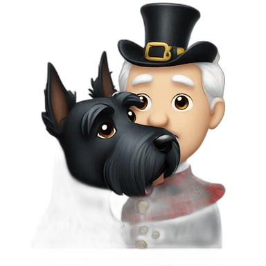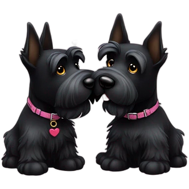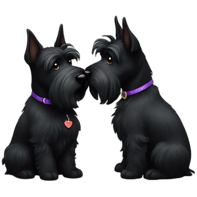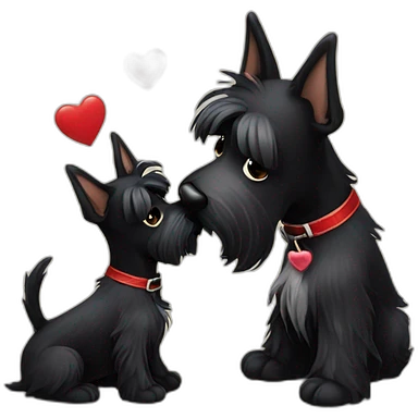 Senior black Scottish terrier kissing puppy Scottish terrier emoji